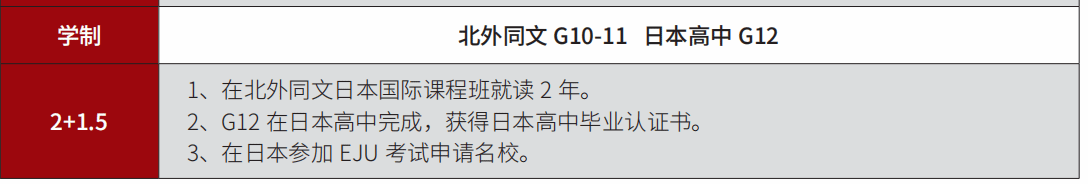学制 :北外同文完成 3 年高中学习,免 EJU 考试入读北外合作优质日本高校。