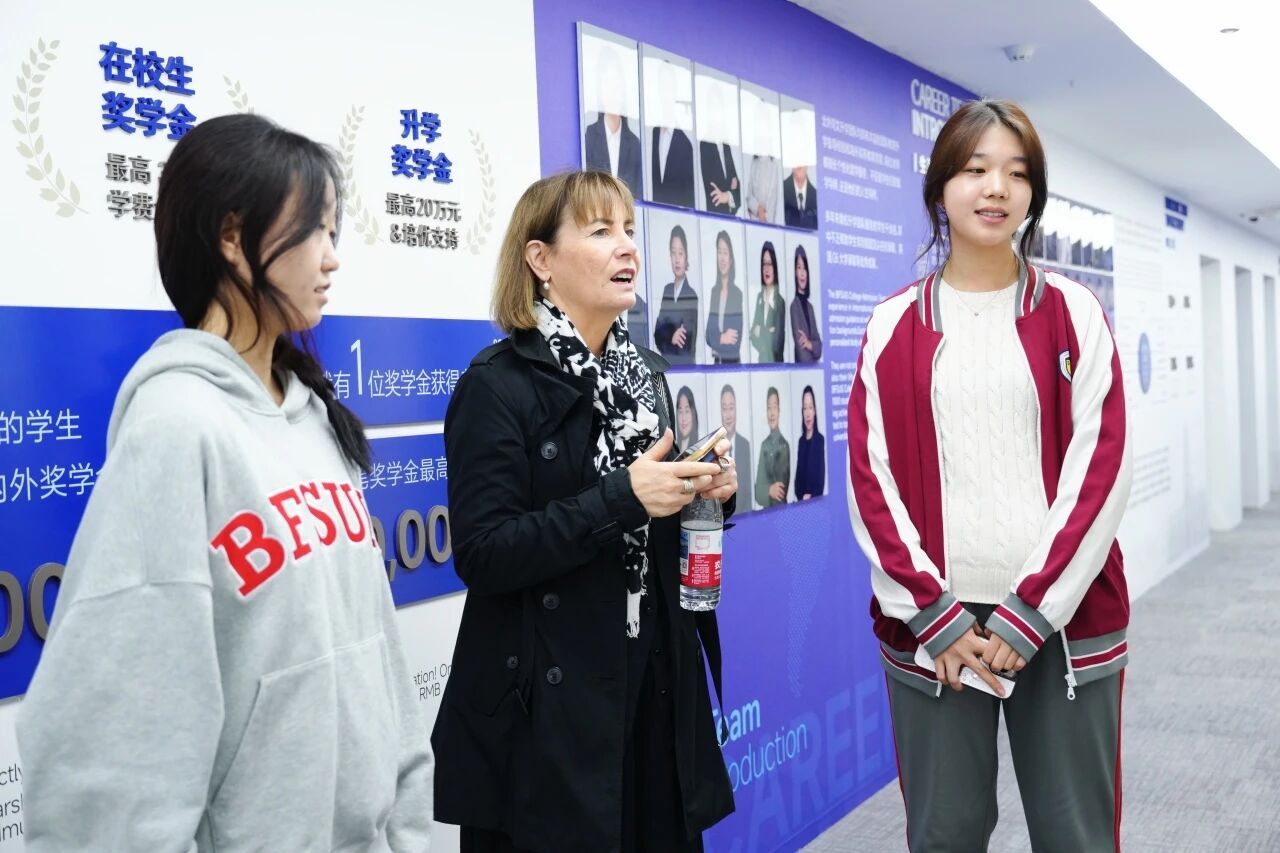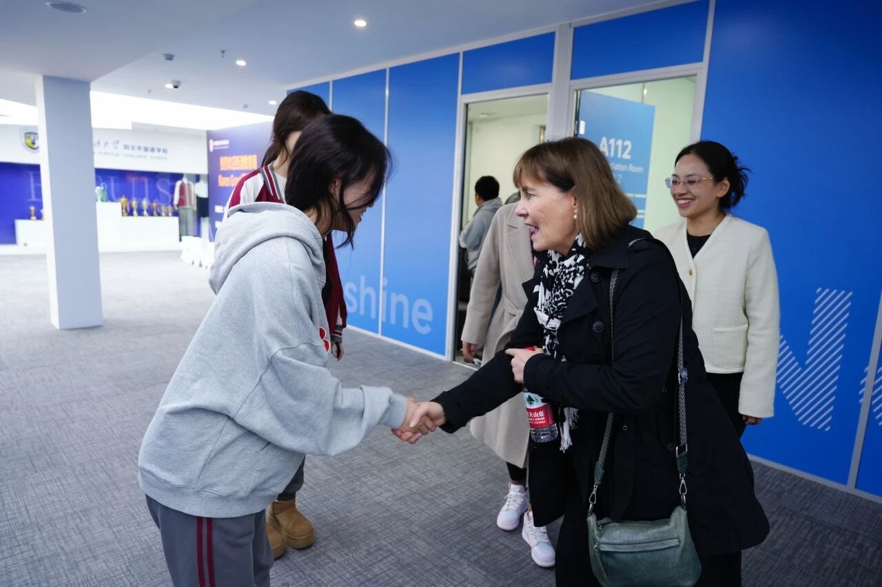 交流伊始,在我校学生志愿者的全程引导下,Karen女士参观了校园并亲身感受了北外同文兼容并蓄、知行合一的校园文化氛围,对学校注重综合素质培养的教育理念频频点头称赞。