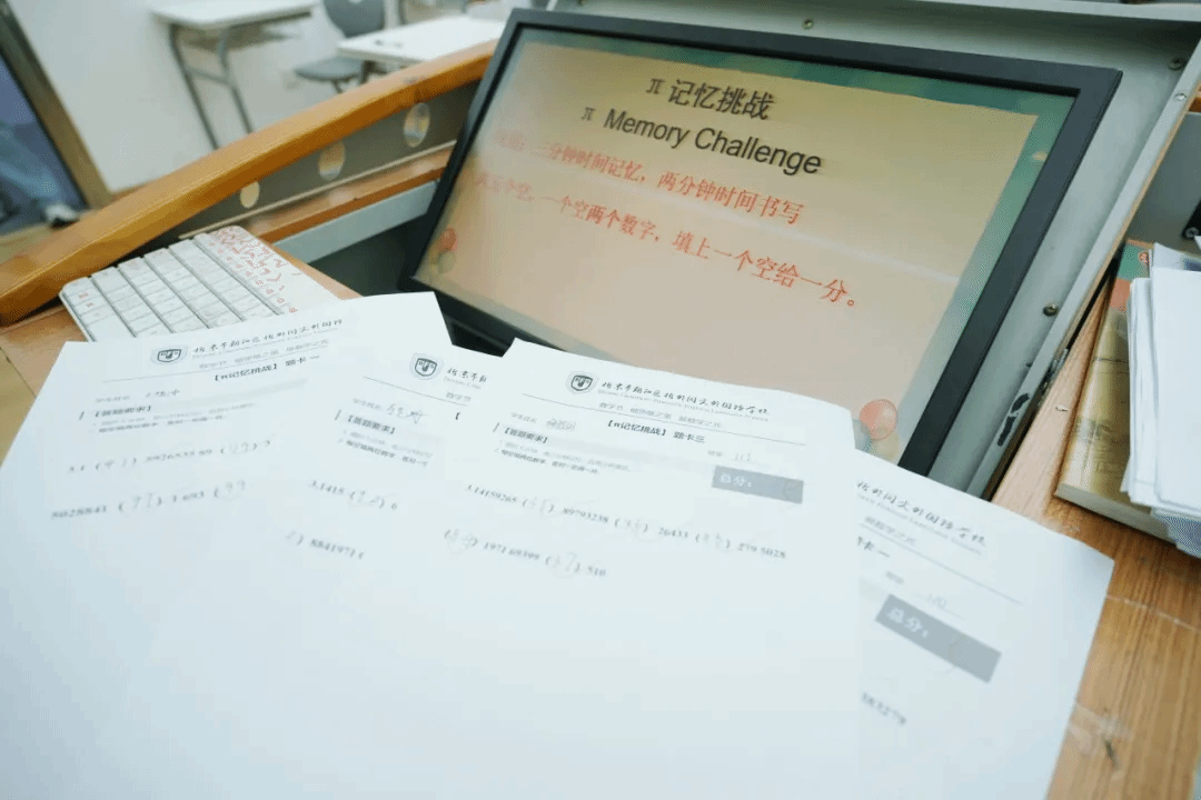 圆周率π,是数学中最具神秘感的数字之一,也是对记忆力与专注力的双重考验。3分钟的记忆时间里,同学们全神贯注,脑海中反复强化数字顺序,用坚持与专注,挑战自己的记忆极限,充分展现了认真细致的良好学风。